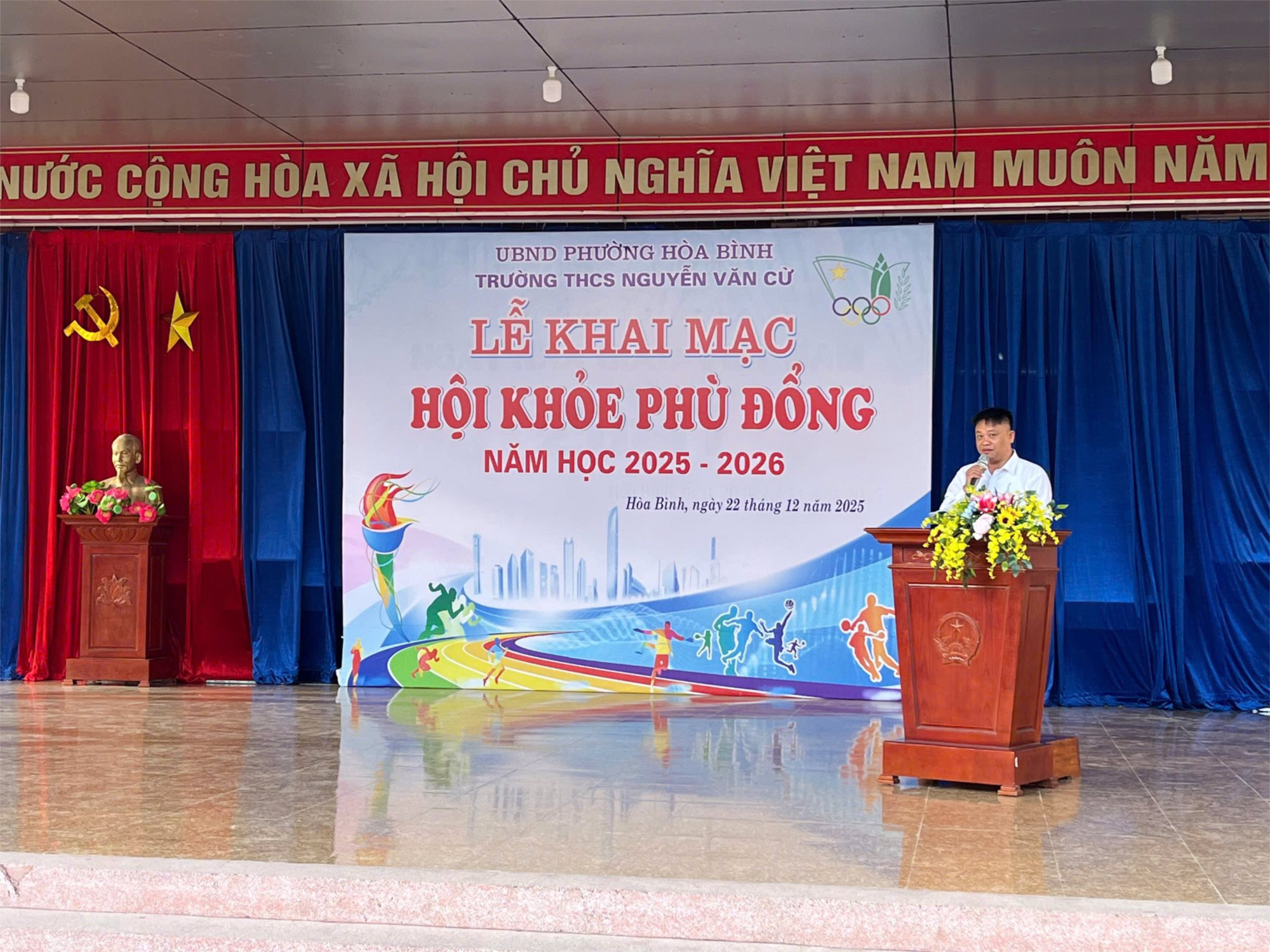 không khí trang nghiêm – phấn khởi – đoàn kết, trường THCS Nguyễn Văn Cừ long trọng tổ chức Hội khỏe Phù Đổng với sự tham dự đông đủ của các vị đại biểu, quý thầy cô giáo và hơn 1000 em học sinh toàn trường.