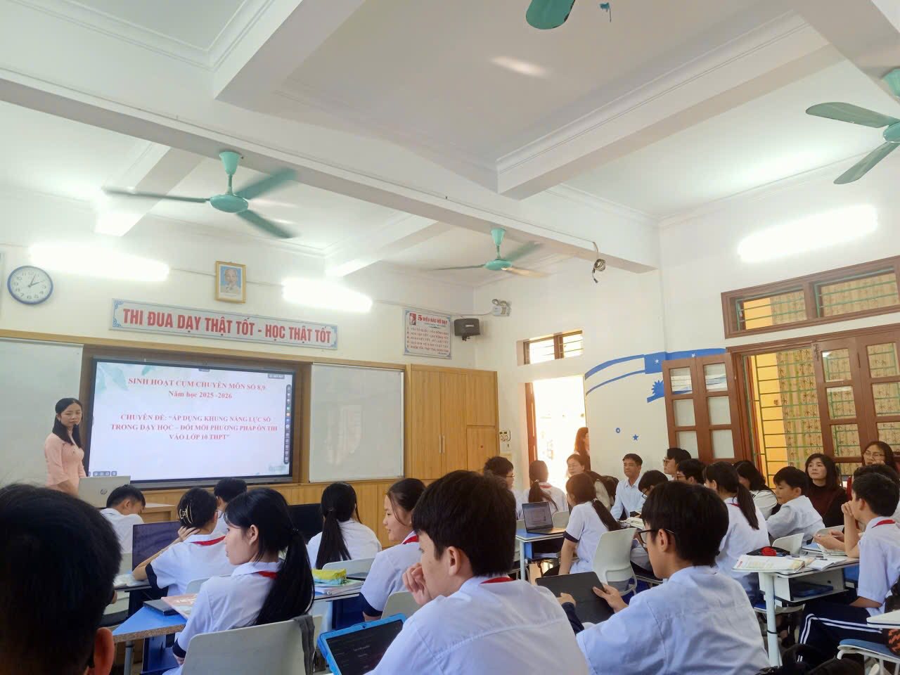 Sinh hoạt chuyên môn theo chủ đề: Đổi mới phương pháp ôn thi vào 10- Áp dụng khung năng lực số trong dạy học.