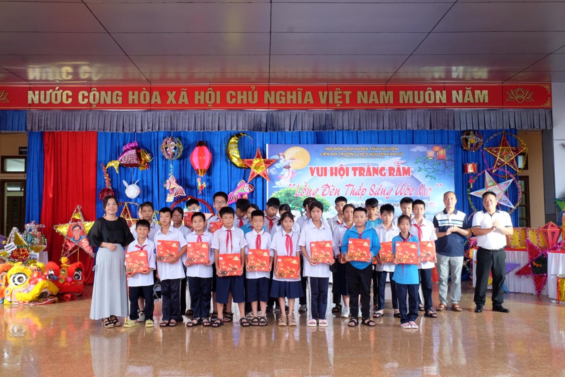 Tại chương trình Vui hội trăng rằm, 1235 học sinh Trường THCS Nguyễn Văn Cừ vui mừng được chào đón Lãnh đạo của 2 địa phương Trung Hà ,Thuỷ Triều đến chung vui và trao quà cho học sinh 2 điểm trường.