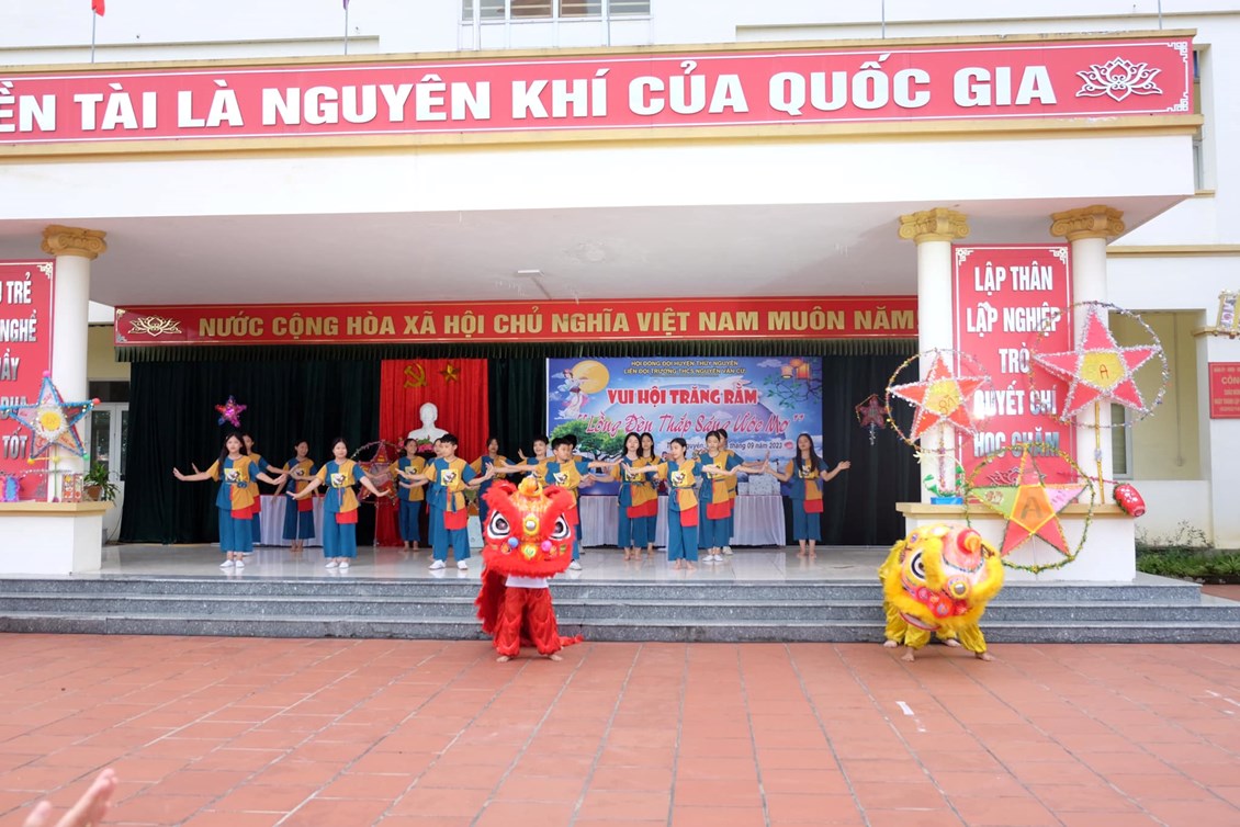 Học sinh toàn trường cùng hòa mình vào không khí vui tươi, tưng bừng của Tết Trung thu.